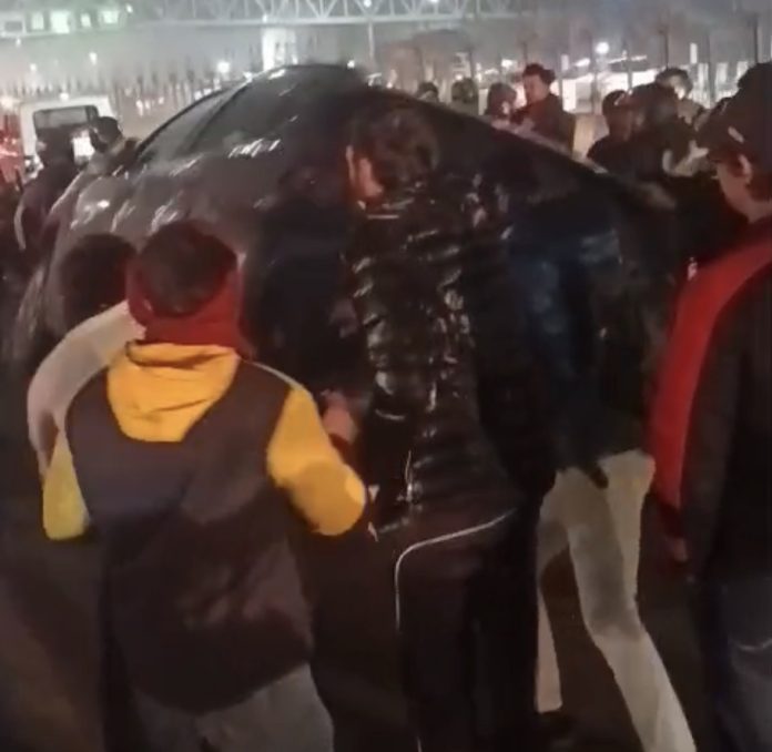 Local residents and passersby immediately rushed to help and rescued the occupants from the overturned car. All the injured were taken to a nearby hospital for treatment. Doctors stated that the injuries were minor in nature.