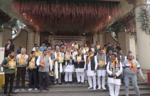 Addressing the gathering, chief guest D.P. Yadav, former Member of Parliament and former Minister of Uttar Pradesh, emphasized the need to eradicate the dowry system from society. He urged families to take a firm pledge for dowry-free marriages, stating that neither should dowry be demanded nor given. He also highlighted the importance of education and employment generation for sustainable social development.