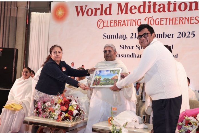 Ghaziabad : December 21 On the occasion of the Second World Meditation Day–2025, a grand program titled “Celebrity Togetherness” was organized on Sunday at Silver Spoon Hotel, Vasundhara, Ghaziabad. A large number of participants attended the event and experienced the practice of Rajyoga Meditation.